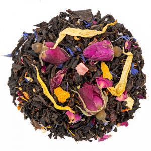 Зажигательный микс черного чая с цитрусовыми и цветами. В центре композиции крупные листочки черного чая, выращенного в Индии. Сушенные корочки апельсина и сочные кусочки ананаса придают смеси цитрусовые ноты и яркий цвет. Кожура шиповника добавляет нотку душистости. Лепестки алой розы, небесного василька, солнечного сафлора и полевого подсолнуха привносят цветочный аромат. В сухом виде – яркая, насыщенная смесь. В заварочном чайнике выглядит завораживающе.