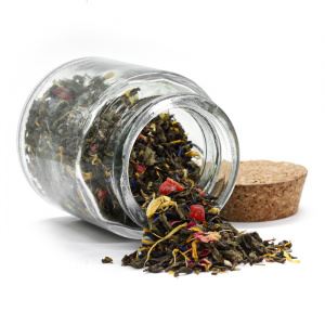 Яркий и соблазнительный как парижское кабаре микс зеленого ганпаудера с кусочками сладкой папаи, тропического ананаса, спелой клубники, украшенный нежными лепестками роз, подсолнуха и василька. В сухом виде – буйство красок: нежно-зеленый, изумрудный, розовый, пурпурный, желтый и небесно-бирюзовый. В прозрачном чайнике лепестки и кусочки фруктов кружатся в очаровательном танце.