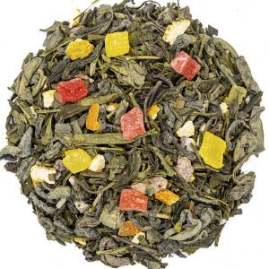 Сенча, ганпаудер, папайя, персик, цедра апельсина, ароматизатор.