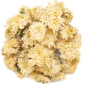 Нежно-кремовые сушеные цветки хризантемы, выращенные в регионе Хуаньшань, название которого переводится как Желтые горы. Являются основой для традиционного китайского лечебного напитка, улучшающего пищеварение, работу легких и нервной системы. Цветочки хризантемы могут подаваться как самостоятельный напиток, а также быть добавкой к другим чаям.