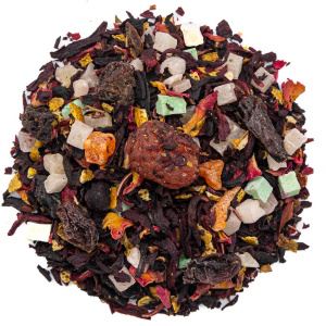 Необычная смесь, в большей степени состоящая из фруктов и ягод. Крупная вяленая вишня, королевский изюм, рубленый ананас, манговые кубики, апельсиновые корочки, шиповник. Гибискус и лепестки роз составляют лишь малую часть микса. Ягоды, фрукты и лепестки ароматизированы натуральными маслами. В сухом виде выглядит как россыпь леденцов.