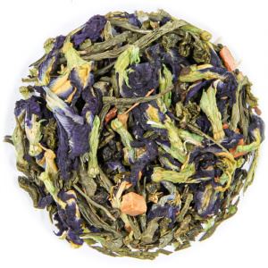 Синий чай Анчан производят из крупных зелено-фиолетовых бутонов растения Клитория Тройчатая, собранных на плантациях Таиланда. Вырастить Анчан в теплице или искусственном климате невозможно. Ограниченный ареал обитания и высокий спрос влияют на цену – она просто не может быть низкой. Удивительные цветы превращаются в настой ярко-голубого цвета, а если капнуть лимонный сок, то чай станет фиолетовым. При долгом заваривании становится ярко-синим. Вкус чая "Голубая карамель" дополнен нотками карамели, улуна и солодки.