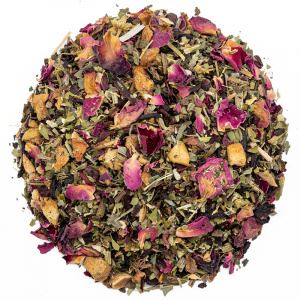 Каркаде, мате, лист крапивы, земляники, яблоки, лепестки розы, цвет ромашки, ароматизатор