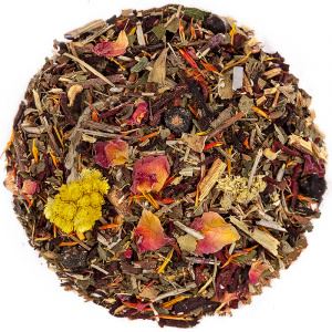 Каркаде, корень солодки, мята, мелисса, лепестки сафлора, розы, лист земляники, ягоды можжевельника, цвет бессмертника.