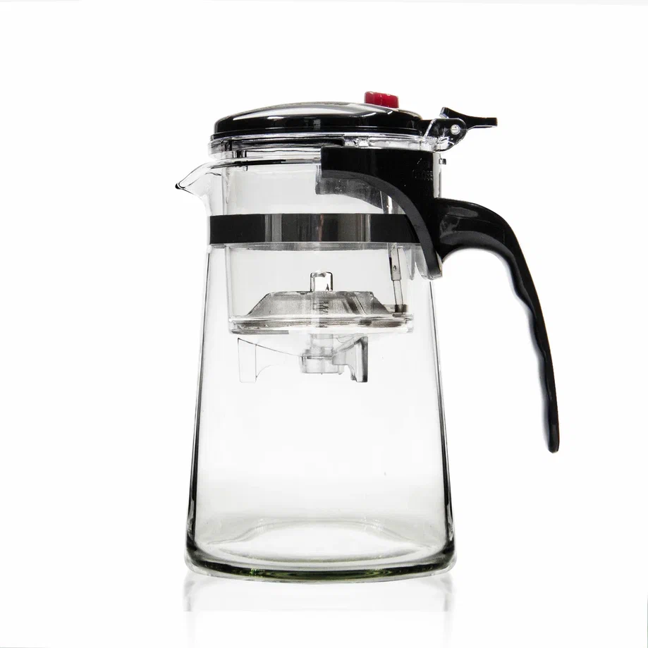Типод Гунфу из упрочненного стекла с колбой и кнопкой – удобное решение для заваривания чая, травяных и фруктовых сборов. Множество людей по всему миру уже сделали свой выбор в пользу подобной посуды, и это не случайно. В отличие от заварочных чайников, крепость и насыщенность настоя в типоде Вы регулируете сами. Просто засыпаете нужное количество заварки в верхнюю колбу, заливаете кипяток, нажимаете кнопку, после чего настой напитка уже фильтруется в стеклянную ёмкость. Настой всегда будет чистым и прозрачным, ведь заварка остаётся в колбе и не попадает в Вашу чашку. Помимо этого, главного достоинства у типода Гунфу есть и другие. Это большой объём стеклянной части, благодаря чему эта посуда просто незаменима для семейных чаепитий и для празднеств с приглашением гостей. Элегантная и практичная черная ручка, из-за которой типод удобен в употреблении, добавит комфорта в Ваши ежедневные трапезные ритуалы. Наконец, лаконичный дизайн, мягкое сочетание форм, белого, прозрачного и черного цветов сделают эту посуду незаменимой частью любого кухонного интерьера.