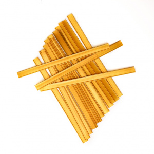 Гибкие пластиковые полоски размером 11*0,5 см золотистого цвета. Используются для закрывания пакетов с чаем или кофе.